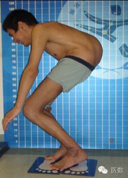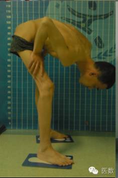 上图:强柱术前的外观,脊柱、髋关节以及膝关节严重受累的外观,患者多年不能直立,日常生活不能自理