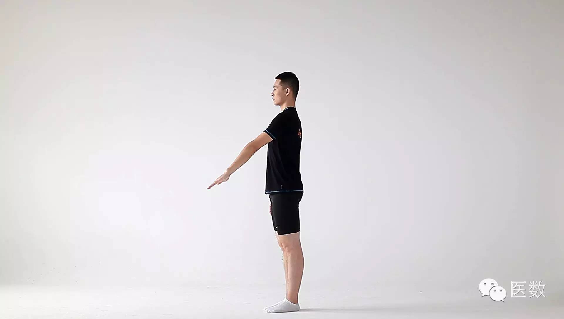 4)运动末端维持5-10秒后,双手离开墙面,维持3-5秒钟;