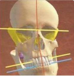 颅骨的塌陷和紊乱导致牙齿咬合平面的轴线与颅骨和脊柱的轴线不对齐。