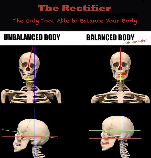 从图中可以看出,牙齿的不完全挤压导致了颅骨在那一点失去支撑,从而使得脊柱,锁骨和骨盆代偿,发生位移。