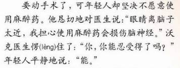 这是以刘伯承为主角,《军神》中的一个片段,那个括号「leng」很眼熟吧?这篇文章被收录在人教版小学六年级课本里。小学课本竟然是坊间谣传的载体,真是令人哭笑不得。