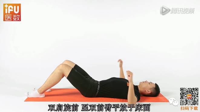 屈曲肘关节90°,双肩旋前,至双前臂平放于床面