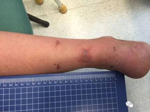 经典的切开跟腱缝合术治疗跟腱断裂,切口长约14cm,手术时间约1小时。