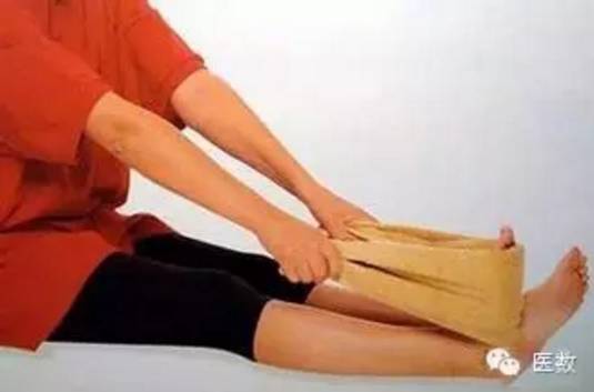 缓慢屈曲正常腿的膝关节,直至受伤腿的腓肠肌伸展「绷紧」。
